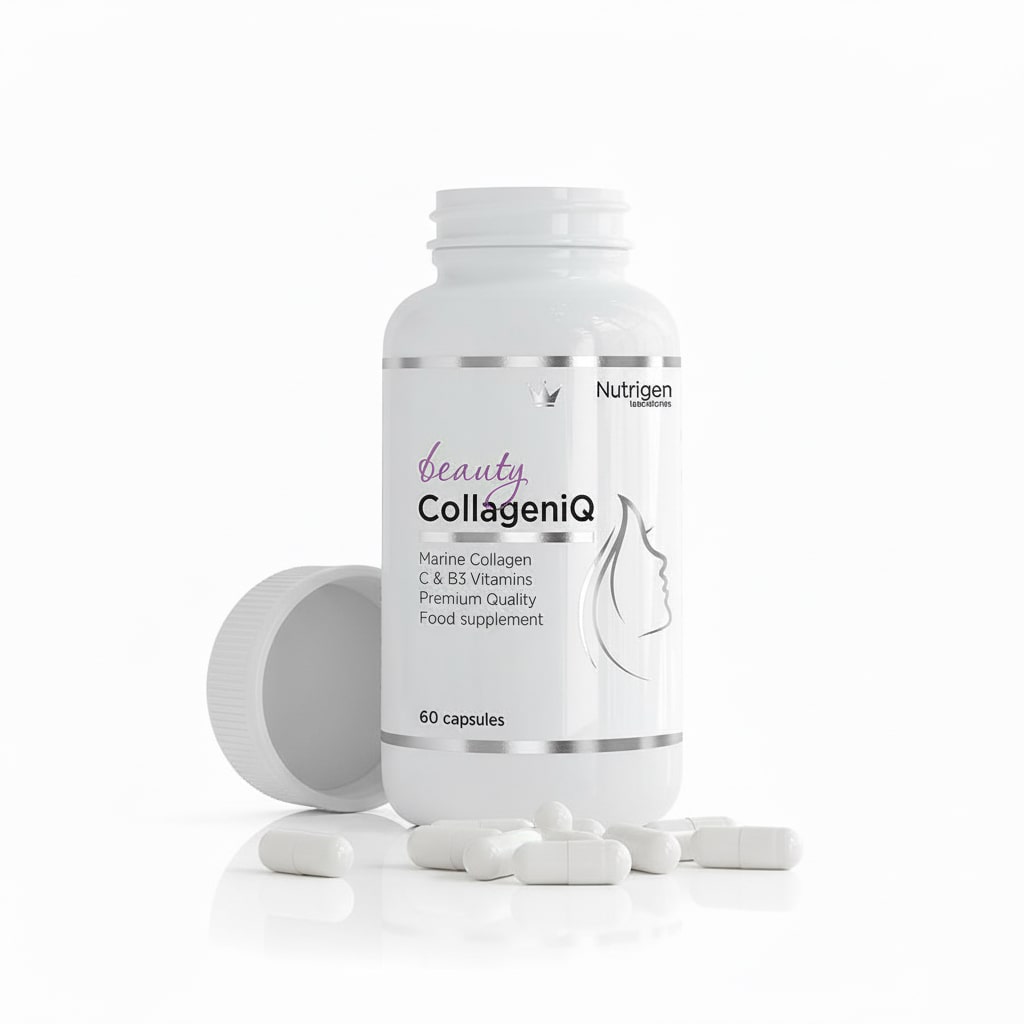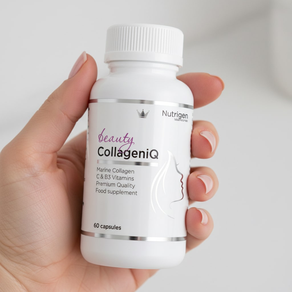 Verjüngen Sie Ihre Haut von innen heraus mit CollageniQ – ein Premium-Beauty-Supplement, das speziell entwickelt wurde, um den Zeichen der Hautalterung entgegenzuwirken. Formuliert mit 100 % reinem Naturkollagen, liefern diese Tabletten die essenziellen Bausteine, die Ihr Körper benötigt, um einen jugendlichen, strahlenden Teint zu bewahren. Da die natürliche Kollagenproduktion mit zunehmendem Alter abnimmt, was zur Bildung feiner Linien und zum Verlust der Spannkraft führt, arbeitet CollageniQ daran, dieses Depot wieder aufzufüllen und die Hautoberfläche effektiv zu glätten.